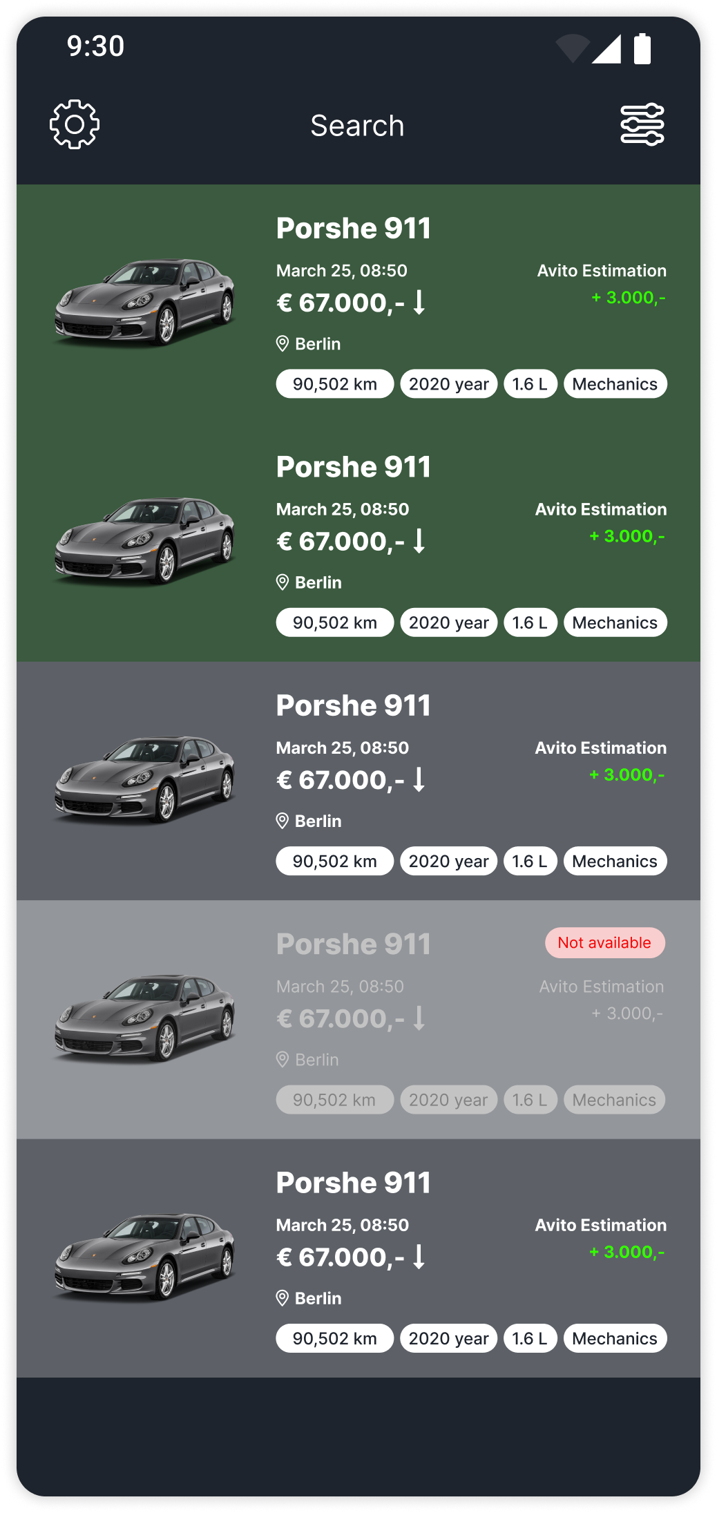 The car listing page was designed in a list format, enabling users to easily scan and compare multiple vehicles. Key information such as price, location, and condition is prominently displayed.